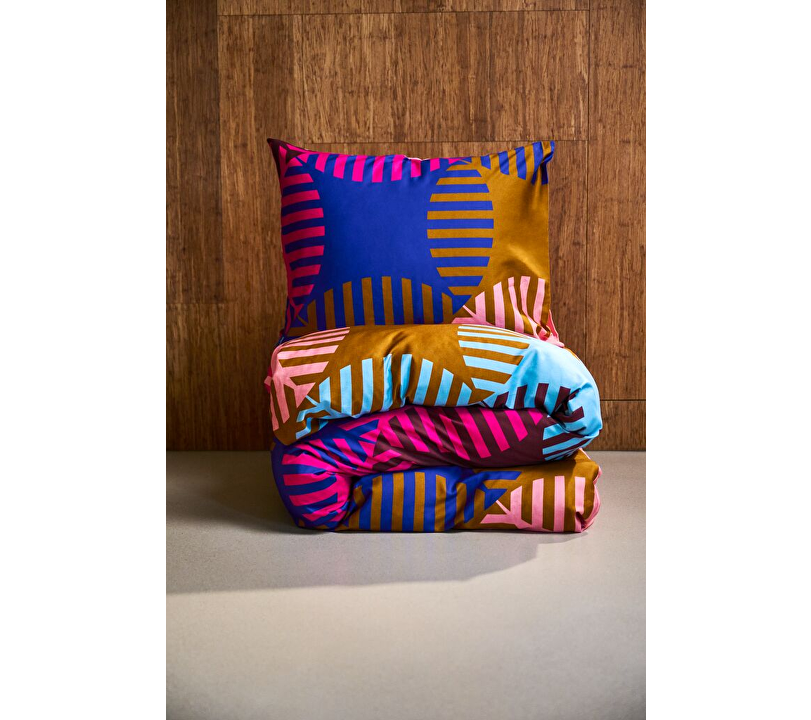 Het Bright Kaleidoscope dekbedovertrek is een perfecte balans tussen expressief design en ultiem comfort. Gemaakt van 100% biologisch katoensatijn, voelt het heerlijk zacht, soepel en verkoelend aan, precies wat je nodig hebt voor een fijne nachtrust. Dankzij de extra lange instopstrook is het dekbed gemakkelijk op te maken en blijft het goed op zijn plek. De kussensloop met dubbele hotelsluiting zorgt ervoor dat je kussen er altijd netjes uitziet, aan beide kanten.