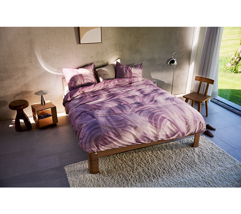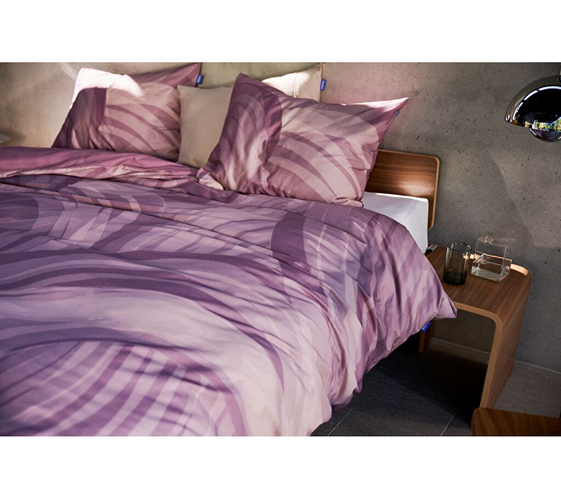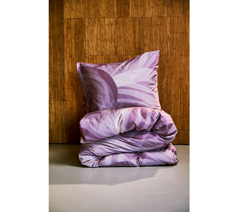 Het Mauve Twist overtrek is vervaardigd uit 100% biologisch katoensatijn, wat zorgt voor een gladde, luxueuze weving en een aangenaam zacht gevoel op de huid. Het dessin bestaat uit golvende lijnen in blush- en mauvetinten, van zacht roze tot dieper “plum”, wat zorgt voor een warme, sfeervolle uitstraling. Aan de achterkant is het overtrek effen mauve, waardoor je de stijl subtiel kunt houden of wisselen in uitstraling.