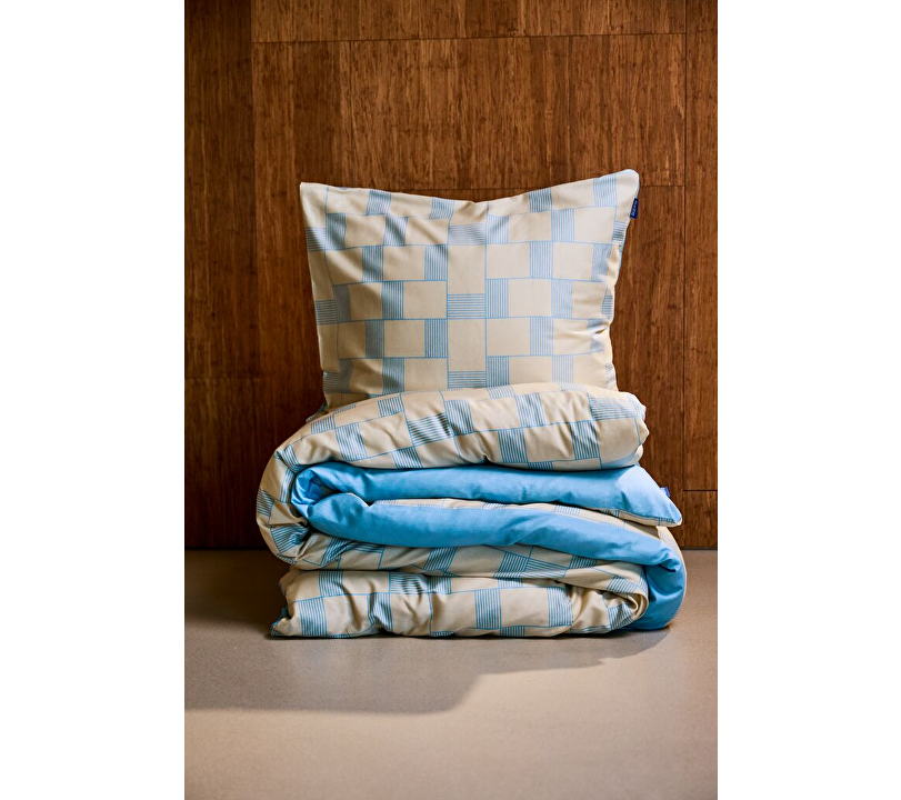 Het Seaside Grid dekbedovertrek combineert elegantie met comfort. Het offwhite overtrek is voorzien van een subtiel, klassiek rasterpatroon van lichtblauwe streepjes, terwijl de achterzijde en kussenslopen in effen lichtblauw zijn uitgevoerd voor een harmonieuze look.