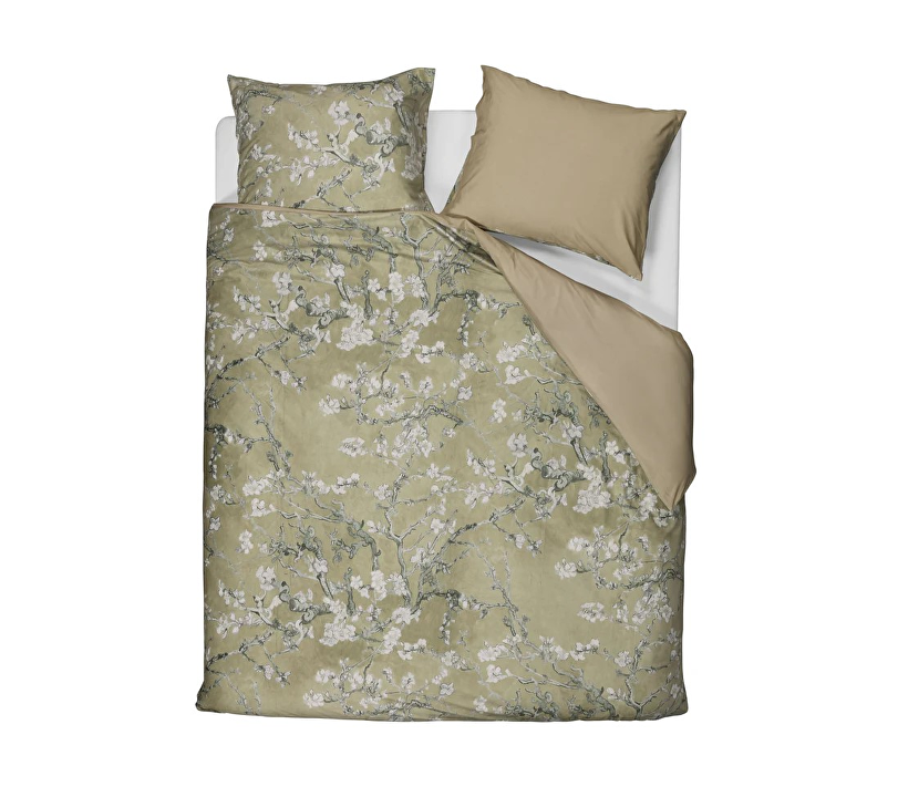 Het Fleur de Velours dekbedovertrek is een moderne interpretatie van Van Goghs iconische schilderij. De sierlijke bloeiende takken komen prachtig tot hun recht op een rijke, goudkleurige ondergrond die rust en verfijning uitstraalt. De achterzijde is effen van kleur, wat zorgt voor een harmonieus geheel. Gemaakt van hoogwaardige materialen voor een comfortabele en stijlvolle nachtrust.