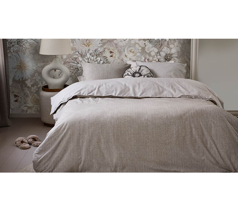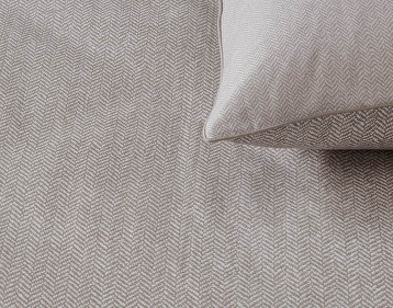 Dekbedovertrek Cheveron heeft een winterse zag zag weving. Midden in het overtrek zijn de initialen van RM gestikt.
