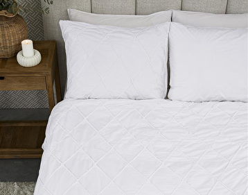 Het Dekbedovertrek Elegance combineert een elegant en tijdloos ontwerp met 100% katoen van 144 TC, wat zorgt voor een luxe uitstraling en een zacht, ademend gevoel. De doorgestikte ruiten op de voorkant geven het overtrek een exclusieve, luxueuze textuur, terwijl de achterzijde eenvoudig en rustgevend wit is. Na het wassen zullen de gestikte diamanten iets samentrekken, waardoor de textuur nog mooier tot zijn recht komt – bovendien is strijken hiermee overbodig, wat het onderhoud van dit overtrek bijzonder gemakkelijk maakt.