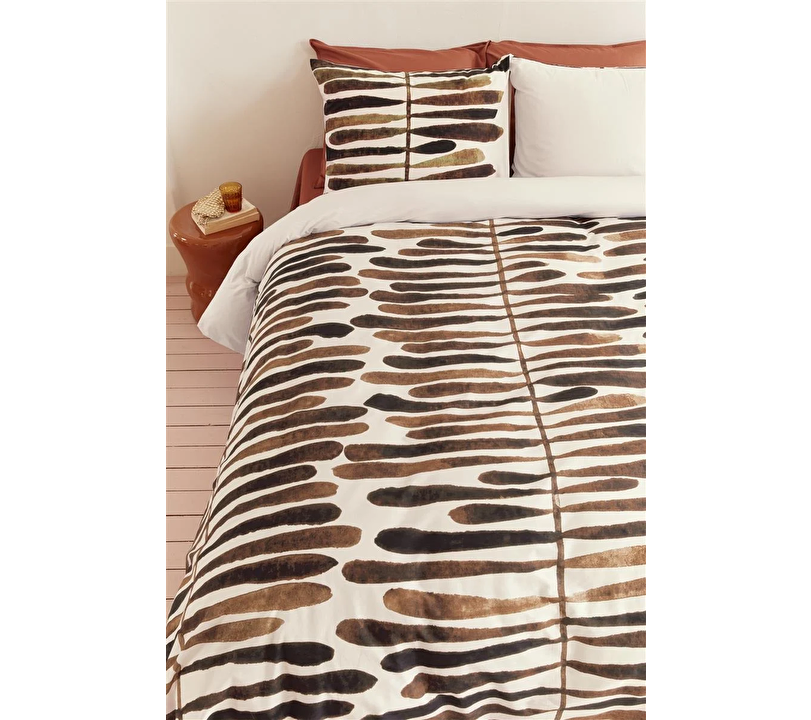 Dekbedovertrek Vtwonen Botanic Stripe Terra heeft een opdruk van handgeschilderde bruin getinte strepen. Dit overtrek geeft een warme en Afrikaanse look aan je slaapkamer. Dit overtrek is gemaakt van 100% katoen, dit zorgt voor een extra goede vochtresulatie.
