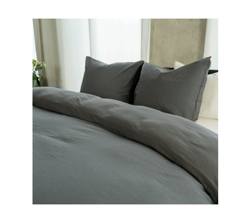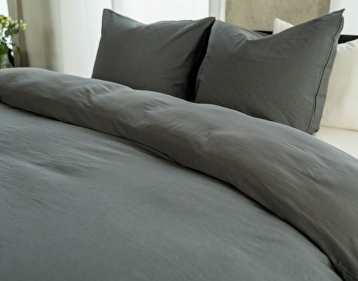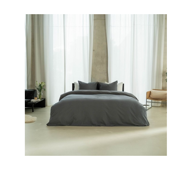 De diepe antracietkleur geeft een moderne, elegante sfeer aan je slaapkamer. Door de natuurlijke kreuk in het linnen krijg je een nonchalante, maar luxe uitstraling – zonder dat je hoeft te strijken.