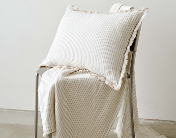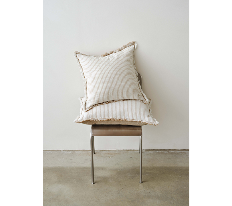 Met zijn zachte, verweerde look en subtiele strepen in donkerzand en gebroken wit is dit kussen de perfecte finishing touch voor je bank, stoel of bed. De dubbelzijdige afwerking maakt het extra veelzijdig – keer het om voor een frisse blik, maar altijd met die ontspannen, natuurlijke uitstraling. Gemaakt van een duurzame mix van biologisch katoen en linnen, voelt het stevig en zacht tegelijk, en blijft het mooi – ook bij veelvuldig gebruik. Tijdloos, natuurlijk en moeiteloos stijlvol – precies zoals je van Marc O’Polo mag verwachten.